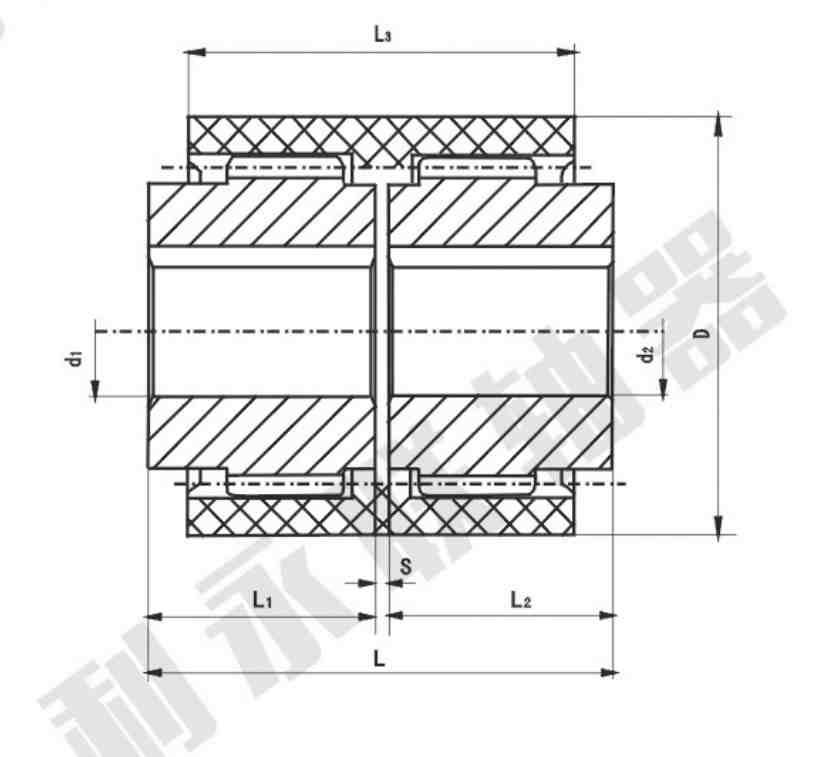-NL型尼龍內齒圈彈性聯軸器是 國內的   新產品,在國外已經廣泛地被采用,NL型尼龍內齒圈彈性聯軸器采用精密鑄造,鑄鐵HT20-40、鑄鋼ZG35Ⅱ、45號鋼,軸孔和鍵槽采用拉制成型,內齒形聯軸器彈性體外套可根據用戶使用要求選用各種硬度合成尼龍、增強鑄型尼龍彈性體等材料。NL型尼龍內齒圈彈性聯軸器普通尼龍外套進行了一系列的改進,采用高強玻纖尼龍66注塑成型,注塑溫度330C、壓力9MPA、時間4S,成型后進行1小時的熱處理、24小時的加濕處理,使其強度超出普通尼龍的3倍。該產品由機械委濟南鑄造鍛壓機械研究所設計,適用于軸間及的撓性傳動,允許較大的軸向徑向位移和角位移,且具有結構簡單、維修方便、拆裝容易、噪聲低、傳動功效損失小、使用壽命長等優點、倍受用戶歡迎。軸孔型式有圓柱形(Y)、圓錐形(Z)和短圓柱形(J)。軸孔和鍵槽按   標準GB3852-83《聯軸器軸孔和鍵槽形式及尺寸》的規定加工。
