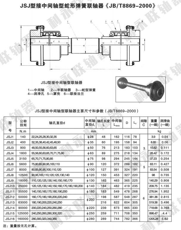 JSJ型接中間軸型蛇形彈簧聯軸器
