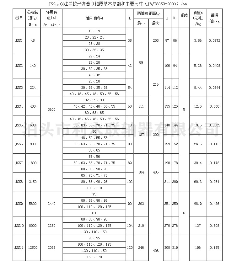 JSS型雙法蘭聯接型蛇形彈簧聯軸器聯軸器