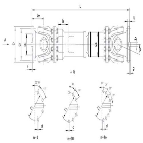 型號 | 回轉 | 公稱 | 疲勞 | 軸線 <β | 伸縮量 LS mm | 尺 寸(mm | 轉動慣量 I | 重量 G | |||||||||||